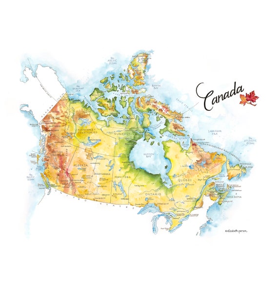 Buy Canada Map Art Print. Illustrated Maps Wall Decor Size 8 X