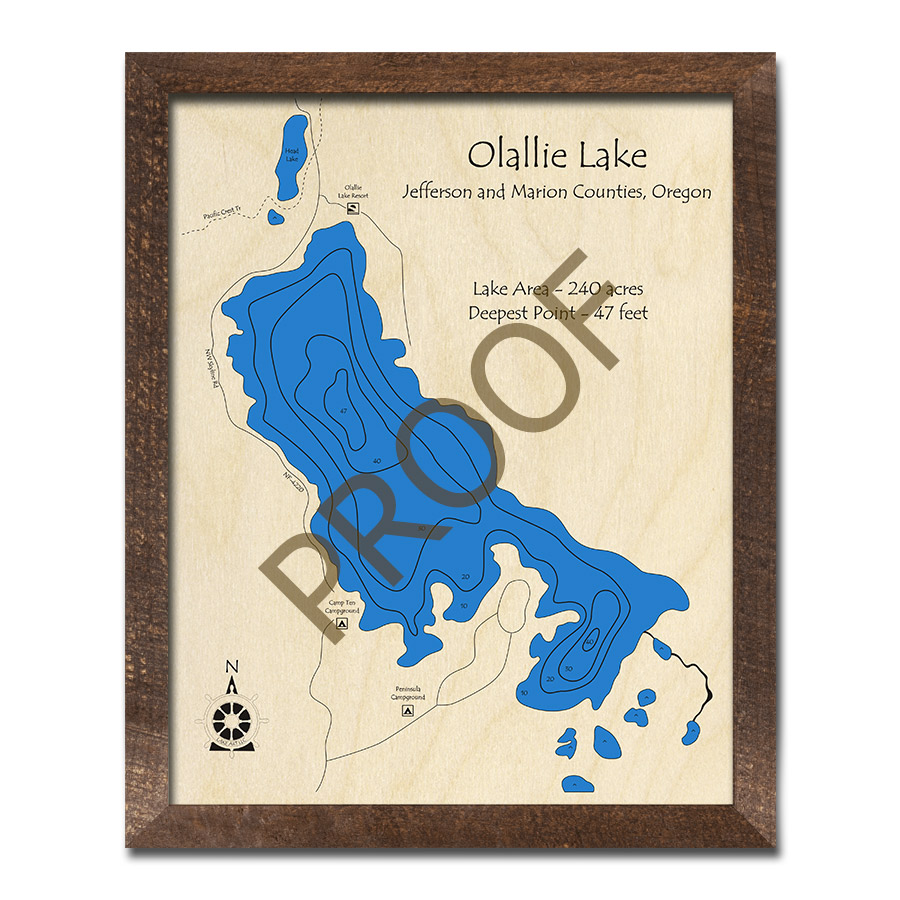 Olallie Lake 3D Wood Map, Oregon, Nautical Map Art
