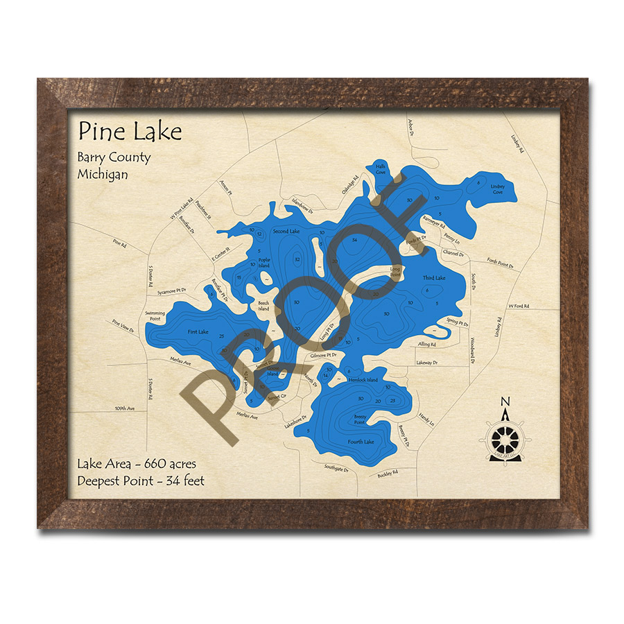 Pine Lake (Barry County), MI 3D Wood Map | Michigan Nautical Wall Art