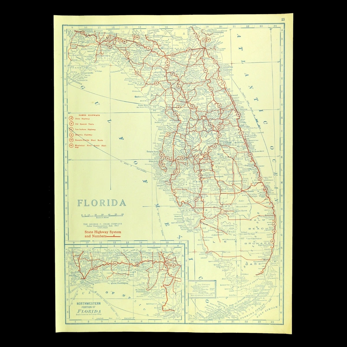 Vintage FLORIDA Auto Trails Map Atlantic Highway 1920s Route 1