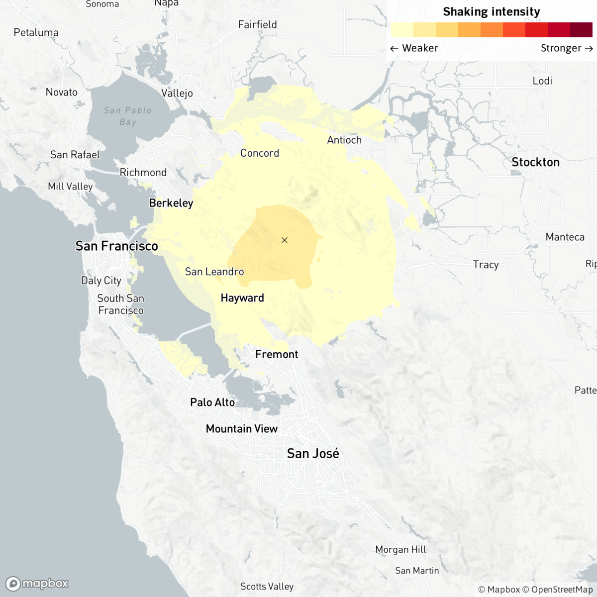 San Ramon Earthquake Map – Additional information collected about the earthquake may also prompt U.S.G.S. scientists to update the shake-severity map. An aftershock is usually a smaller earthquake that follows a larger one . A 5.1-magnitude earthquake occurred southwest of San Esteban, Ilocos Sur early Wednesday morning, the Philippine Institute of Volcanology and Seismology (PHIVOLCS) reported. The quake, which was .