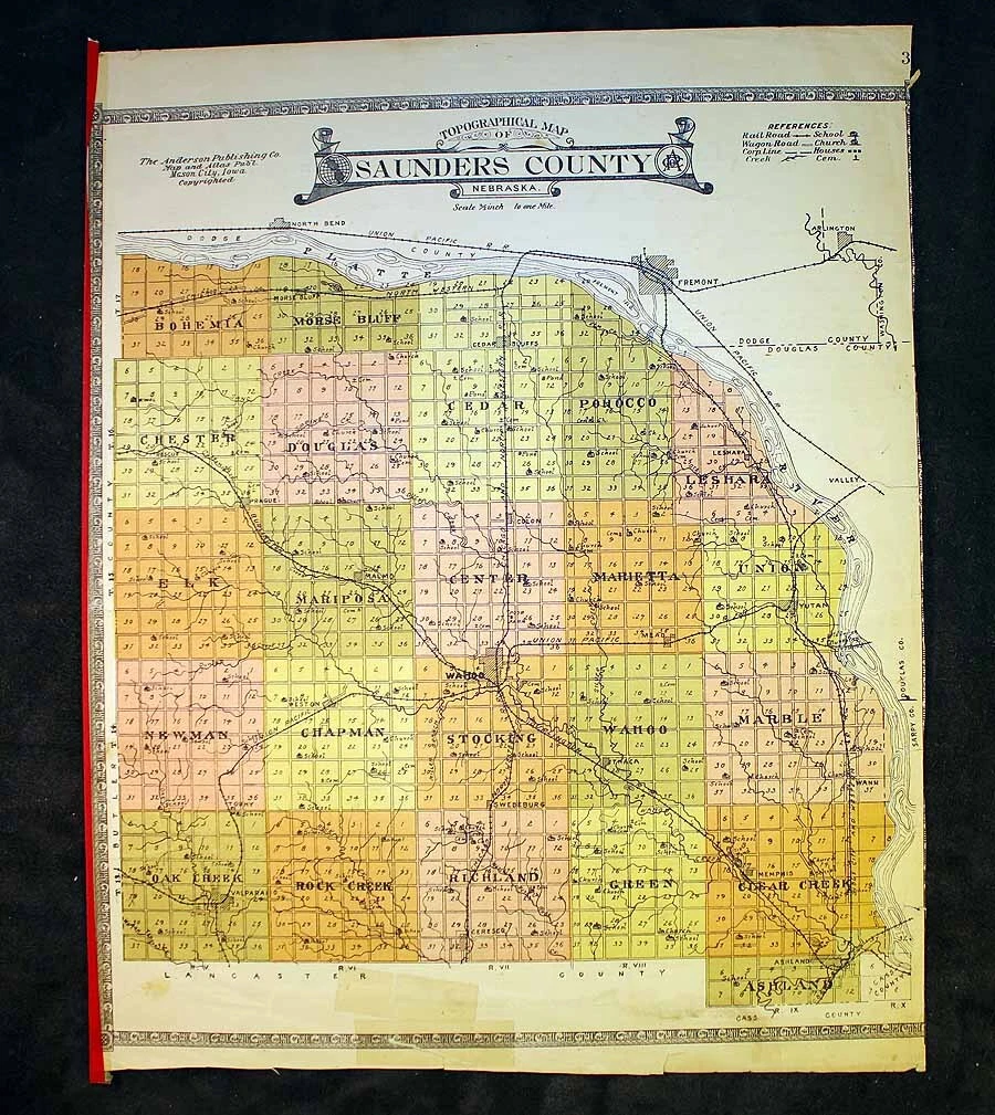 1918 Saunders County Map Saunders County Nebraska | eBay