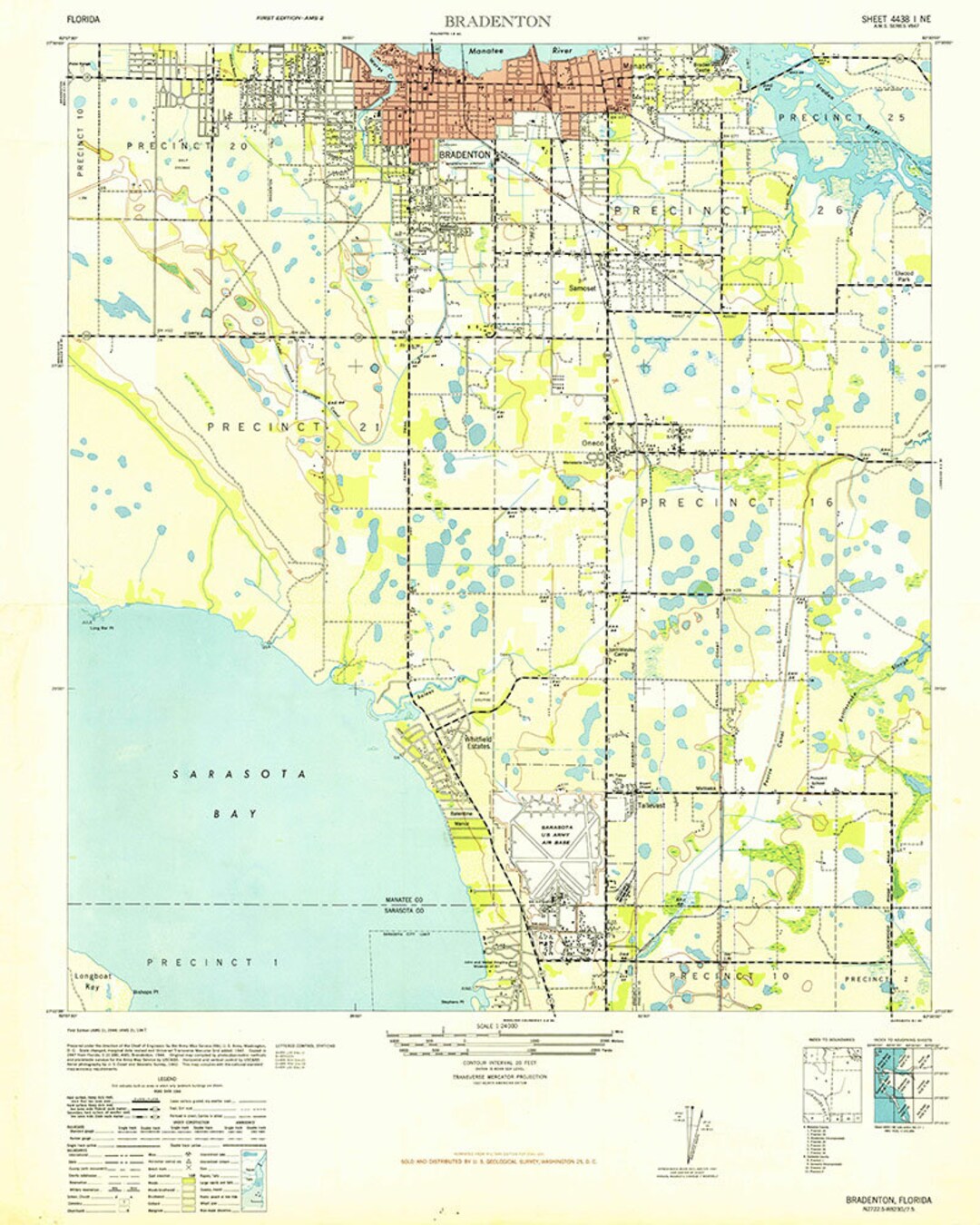 1947 Topo Map of Bradenton Florida Etsy